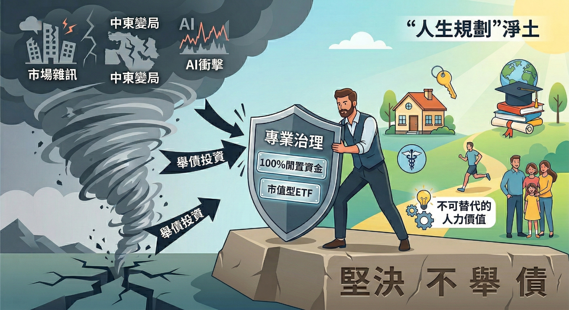 舉債理財將個人的居住安全與信用額度,強行綁架在不可控的外部環境中。一旦人力價值(薪資收入)因技術浪潮出現波動,沉重的債務將成為摧毀人生規劃的重擔。